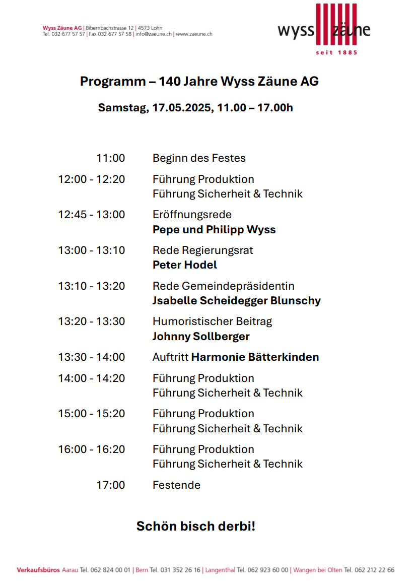 Wir feiern 140 Jahre Wyss Zäune AG.