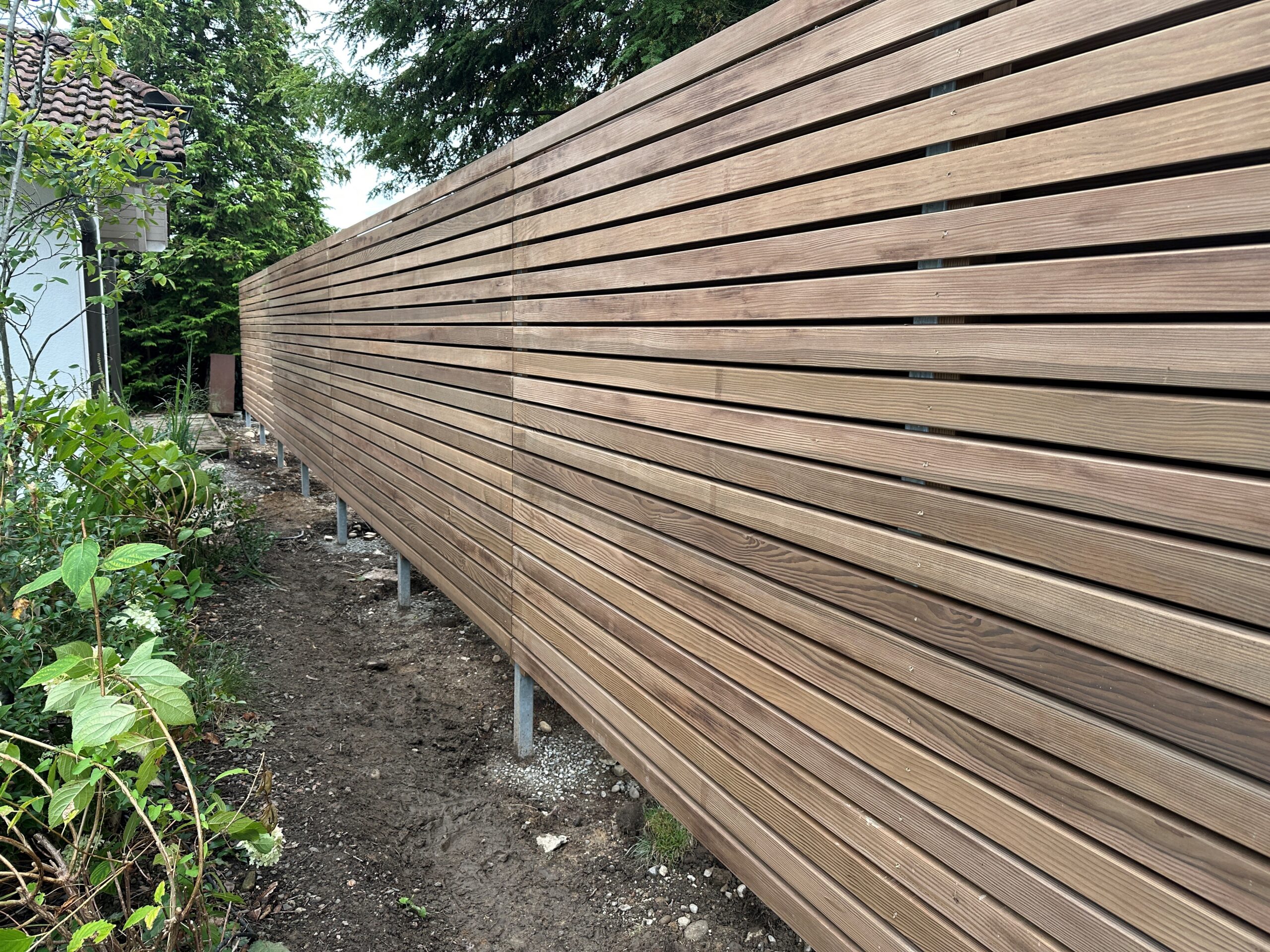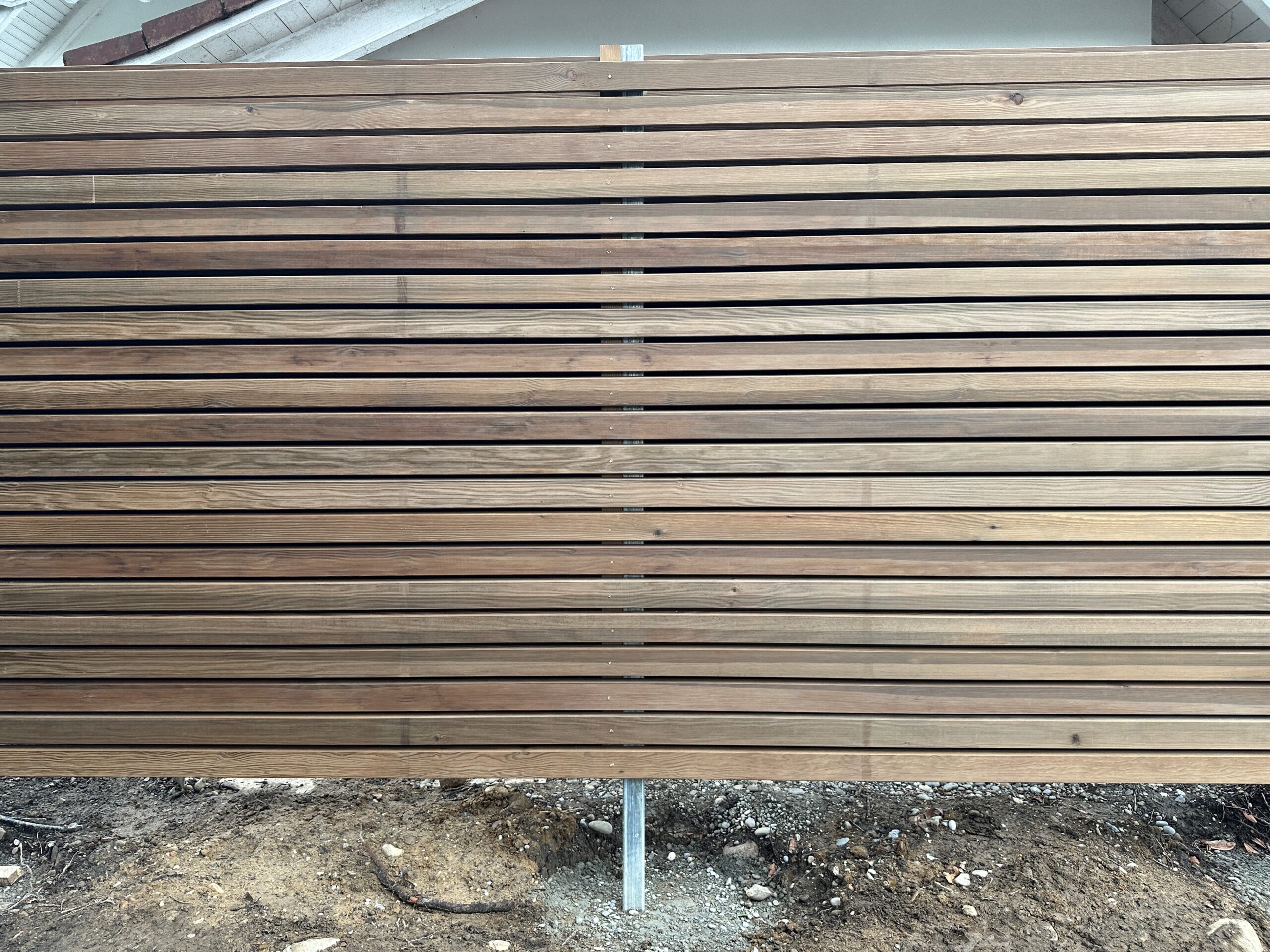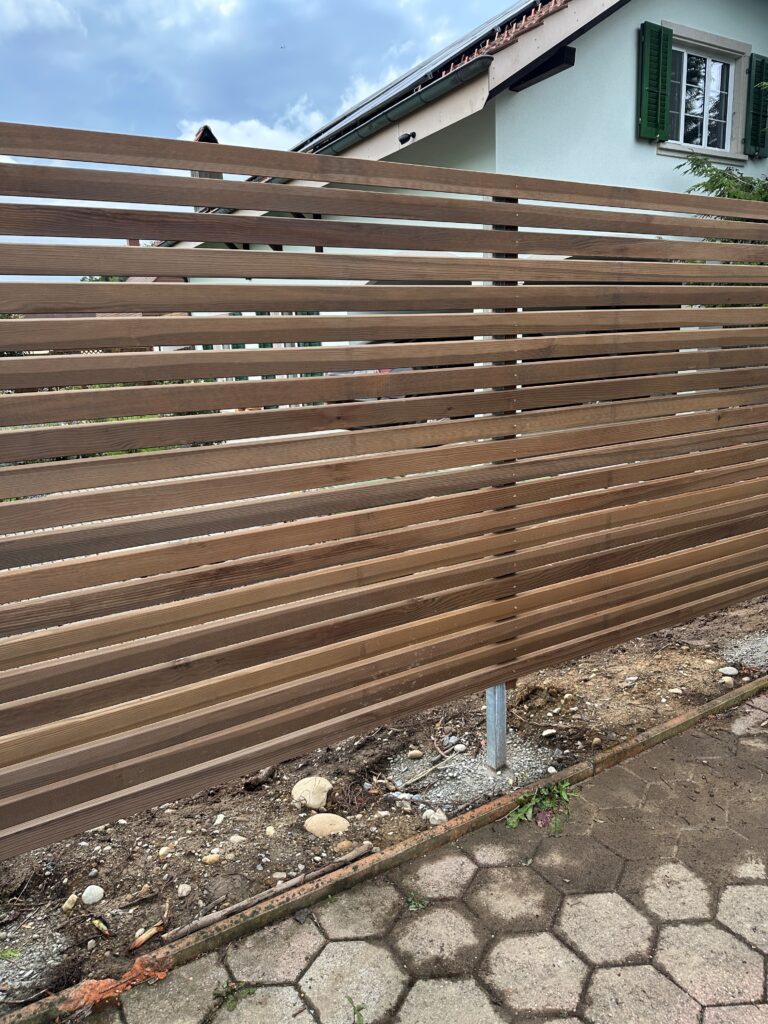 Neben unseres Standardsortimentes bieten wir Ihnen je nach Bedürfnis massgeschneiderte Speziallösungen an. Wünschen Sie einen Zaun mit Lärchen-, Eichen- oder Douglasienholz, offerieren wir Ihnen gerne die gewünschte Holzwand.